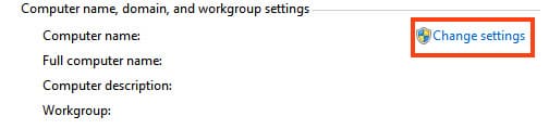 In the «System Properties» menu, click on «Change settings.»