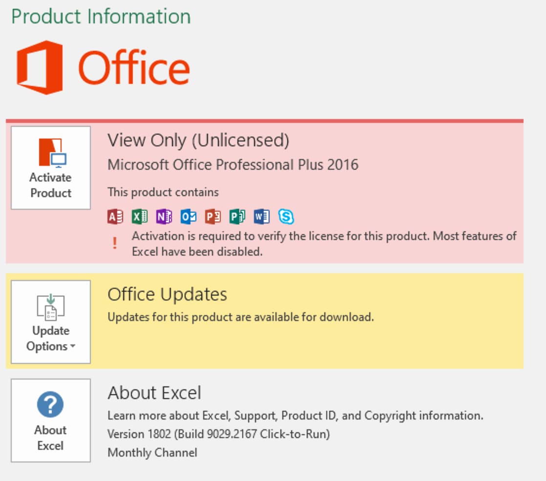 If you have previously activated Microsoft Office 2016 Pro Plus with a key and want to enter a new key (change it), but you do not have the «Change product key» button through the standard «Account» menu?