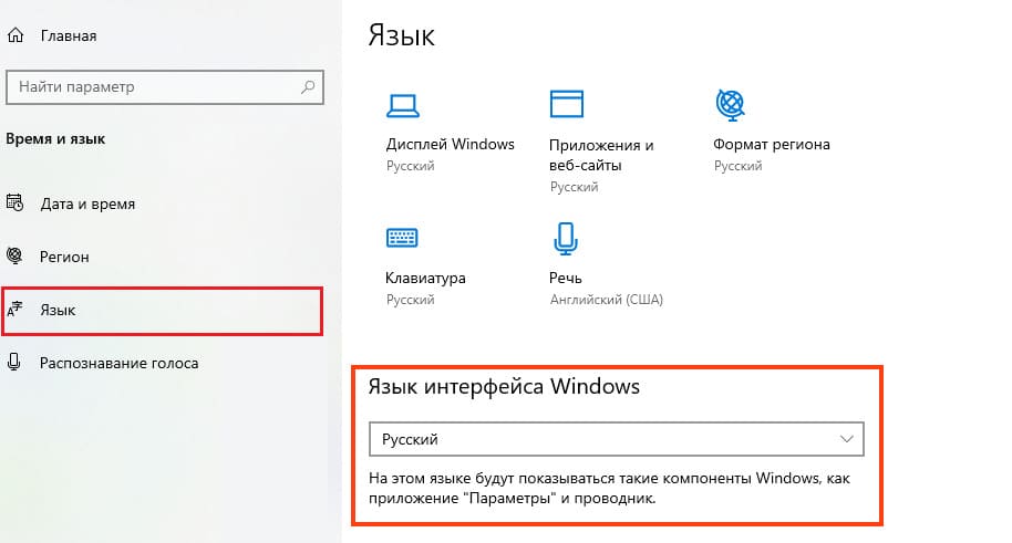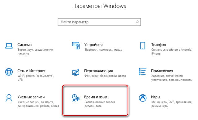 — Let’s check the Language settings. Go to «Параметры» => «Время и Язык».
