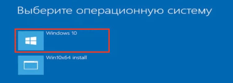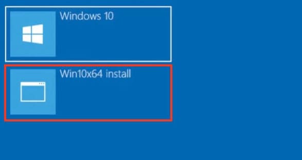 — When restarting, a menu to choose the operating system will appear. Select the entry you created (in our case, «Win10x64 Install»).