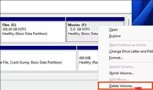 — Now open Disk Management and delete the temporary partition created during the preparation stage.
