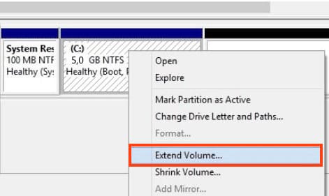 — Finally, select Extend Volume to return these 5 GB to the hard drive.