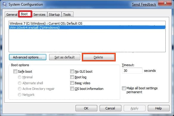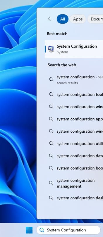 — If after installation there is still an old entry in the boot menu that appears every time Windows starts, open System Configuration (just type msconfig in the search).