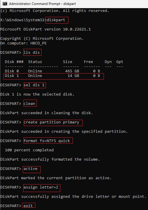 create partition primaryand press Enter to create a new partition.7. To format the disk, enter the command: