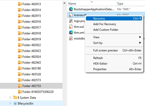 4. After the scan is complete, you will see a list of all detected folders and files. You can preview them, select the necessary data, and click the «Recover» button to save them in a convenient format.