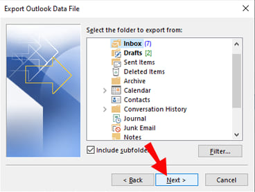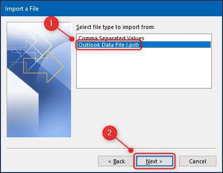 3. Choose Format: Select «Outlook Data File (.pst)» and click «Next.»