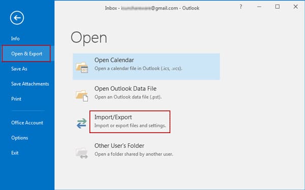 1. Open the File menu: Click «File» in the top menu, then choose «Open & Export» and «Import/Export.»