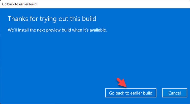 4. Follow the on-screen instructions: read the warnings and click «Next». On the last screen, confirm the rollback to an earlier build.