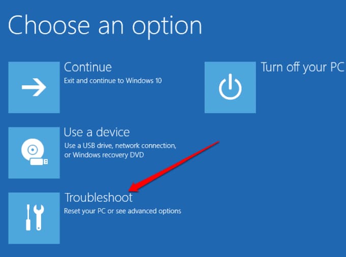 2. Select «Troubleshoot»: in the recovery menu, choose «Troubleshoot», then «Advanced Options».