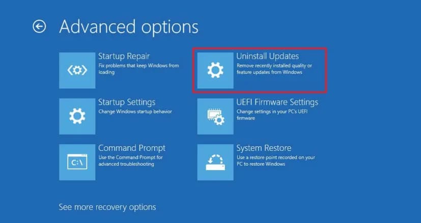 3. Select «Uninstall Updates»: if available, choose the option to revert to the previous Windows version.