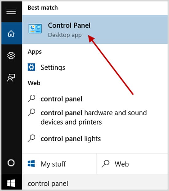— In Windows 10, Windows 8.1, or Windows 7, click Start, type «Control Panel» in the search box, and press Enter.