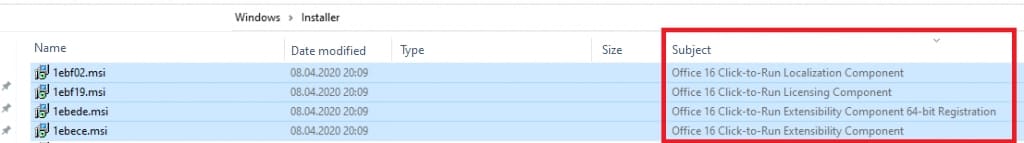 2. Manually remove remnants of the old Microsoft Office application from the Installer folder.