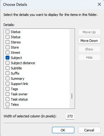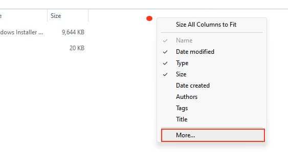 Now, we need to add a new column for sorting in the window. Right-click on the name of any column => More => and check «Subject» in the list.