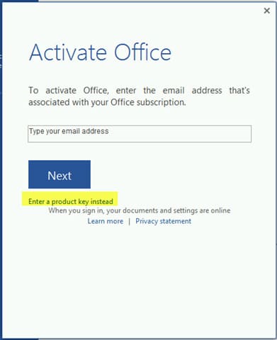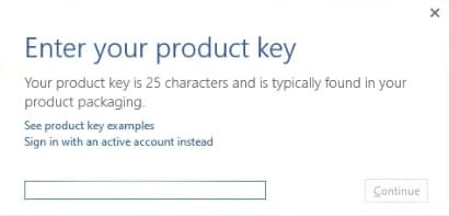 In the activation window, click «Enter a product key instead».