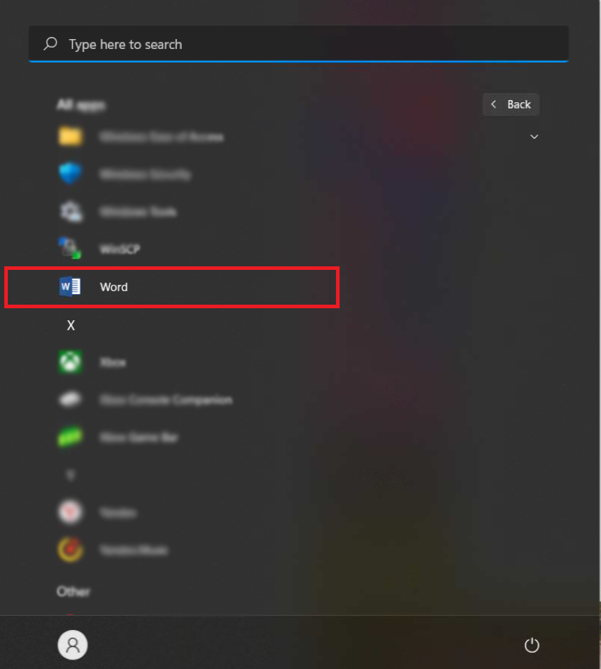 4) Then, after the installation is complete, open the Start menu and find any Office application there, for example, «Word».