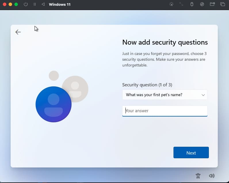 — You will also be asked to create 3 security questions and answers for password recovery.