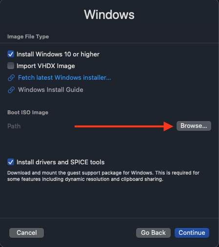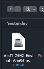 — Select the recently downloaded Windows 11 ARM ISO image and click continue.
