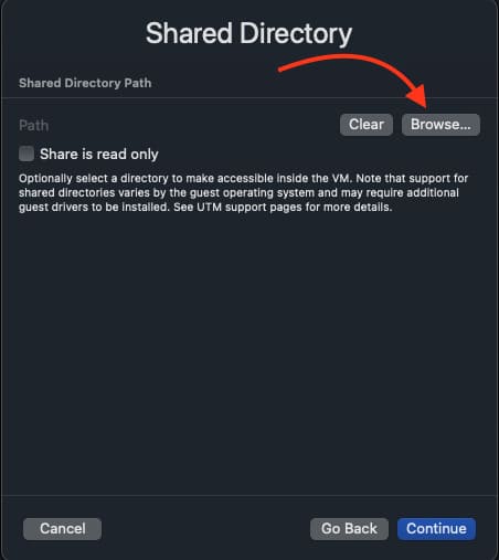 — Shared Folder: create a folder for transferring files between macOS and Windows.