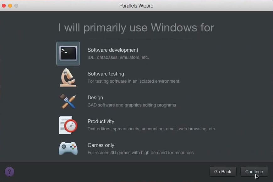 6. Now, if desired, you can select the «application» of your Windows 7, in general, it does not matter which one you choose. You can select «Productivity» and click «Continue».