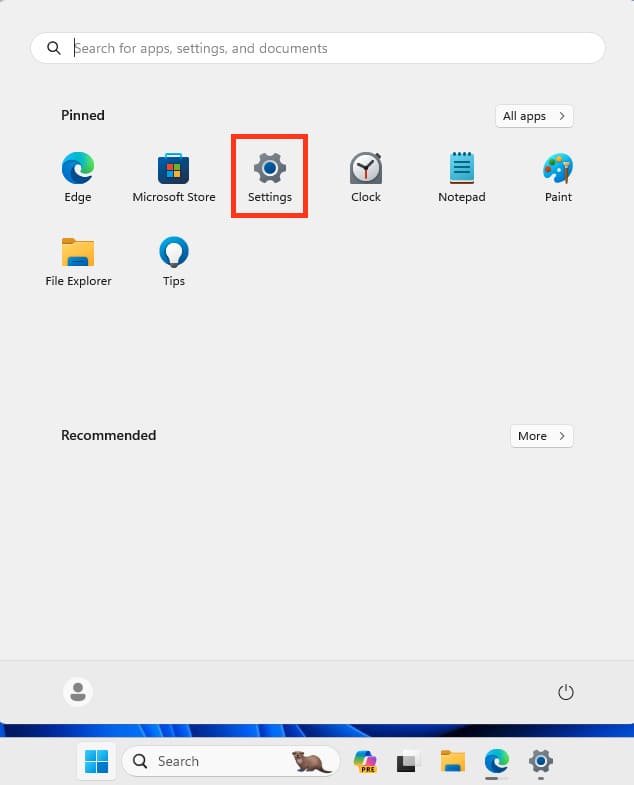 1) Click «Start» => «Settings».