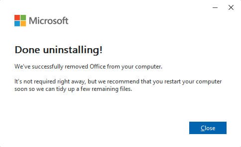 Then just restart your PC to completely remove all remaining Microsoft 365 files.