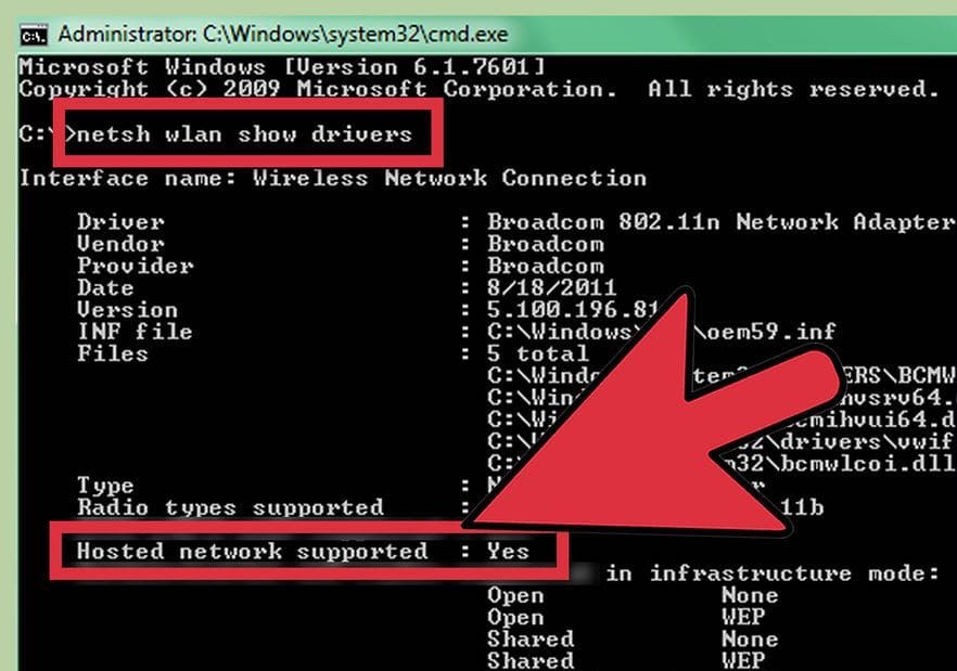 This command will display information about your Wi-Fi adapter and its supported features. Look for the line «Hosted network supported.» If it says «Yes,» you can proceed. If not, update your Wi-Fi adapter drivers from the manufacturer’s website.