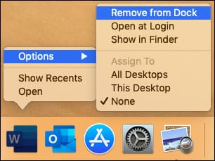You can also remove the application from the Dock if it is placed there. Go to «Options» => Remove from Dock.