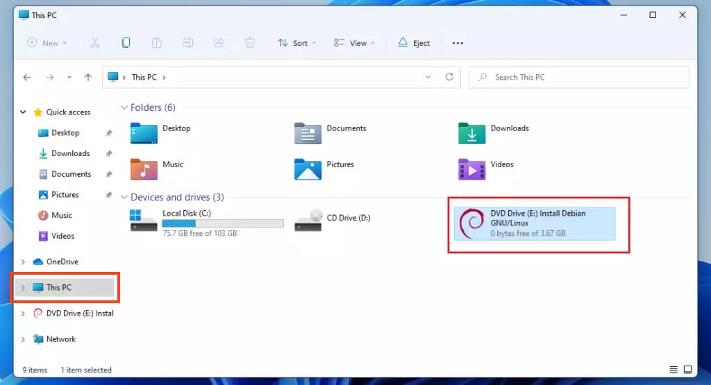 1) Go to Explorer => This PC menu => Find the emulated ISO you need.