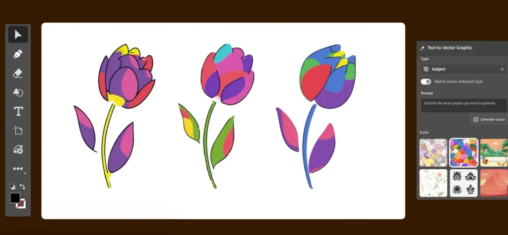 Text to Vector Graphic в Adobe Illustrator является одним из самых мощных дополнений на базе ИИ Firefly для креативных профессионалов. Он позволяет дизайнерам преодолевать творческий ступор, быстро создавать черновики и точно вписывать новые элементы в существующие проекты благодаря функции согласования стиля.