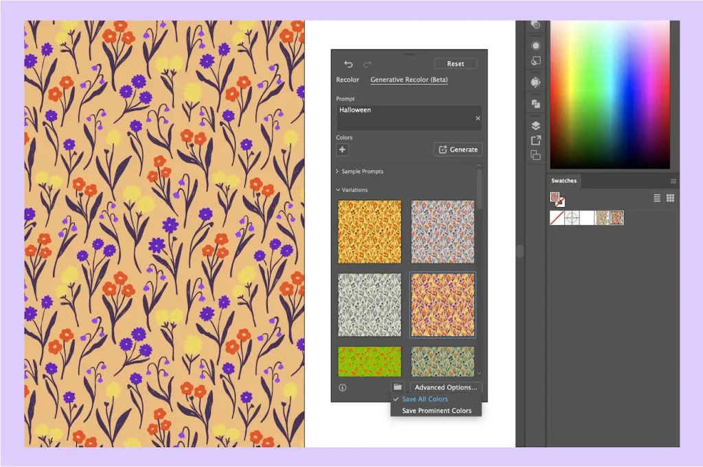 Хотя это не функция «Текст в вектор», Generative Recolor тесно связана с Firefly и улучшает рабочий процесс с векторными объектами.