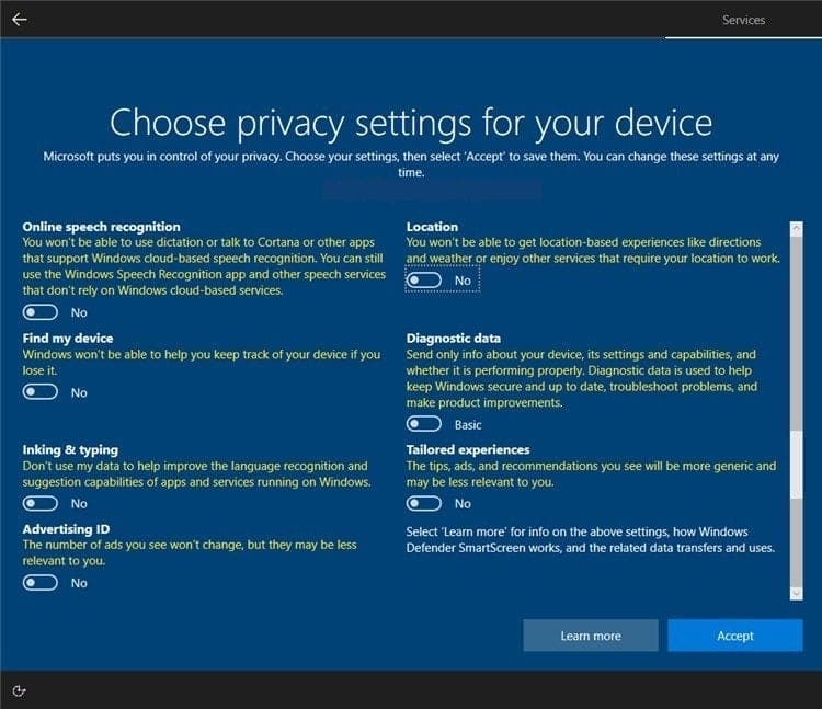 Recommend unchecking all of the «Privacy Settings» options for more secure PC anonymity.