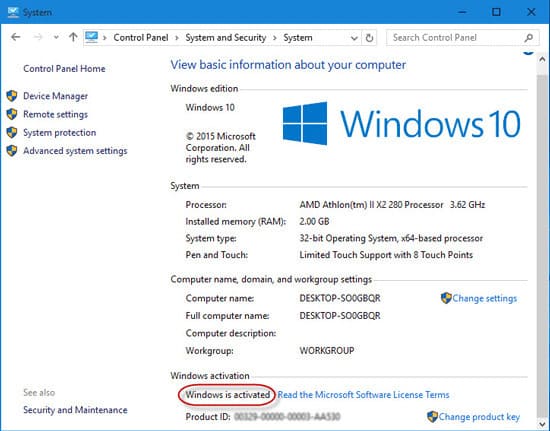 If everything goes successfully, you will see the following window. In the «System Properties» menu, it will indicate that «Activation is complete.»