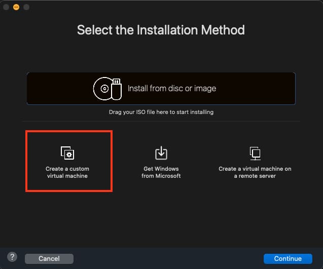 — Open VMware Fusion and click the “+” icon to create a new virtual machine.