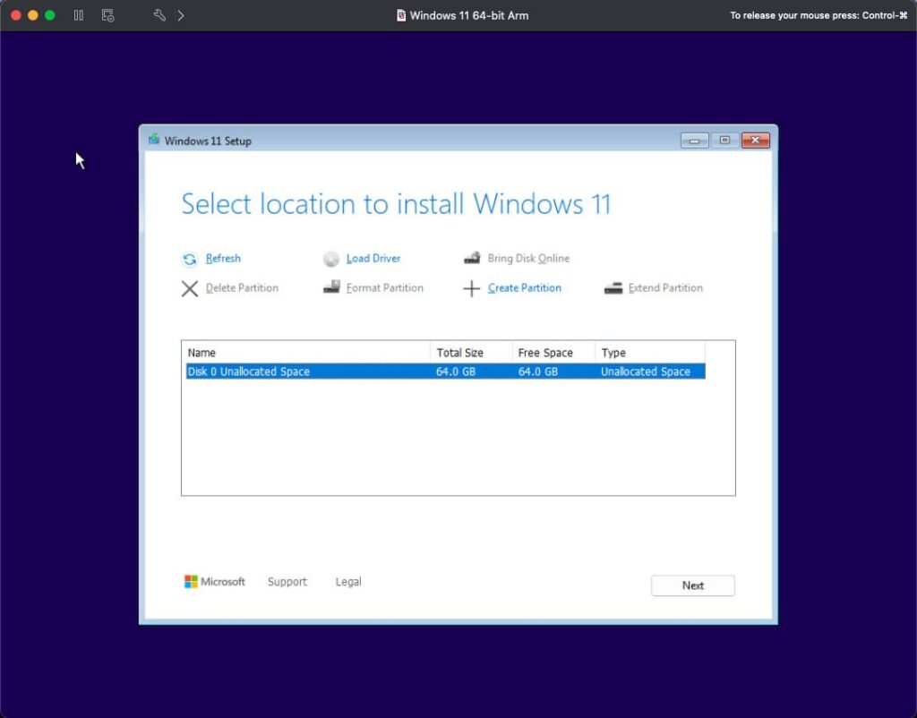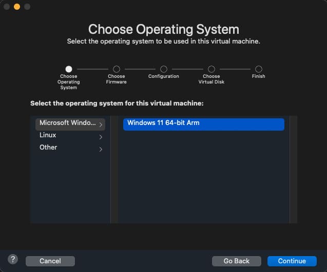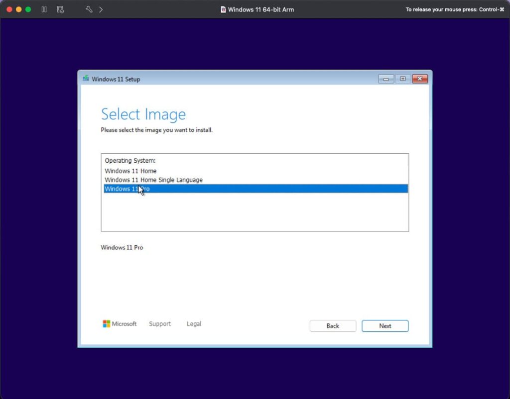 — Specify the OS type: Microsoft Windows and version Windows 11 64-bit ARM.
