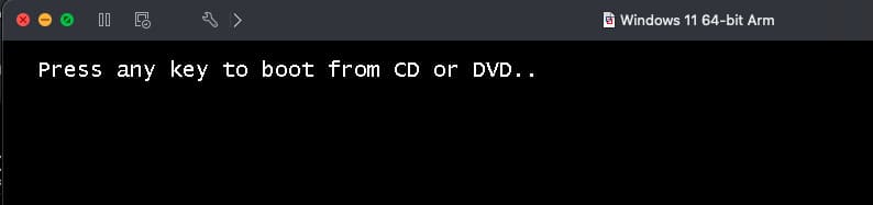 — Start the virtual machine and press Enter to boot from the ISO file.