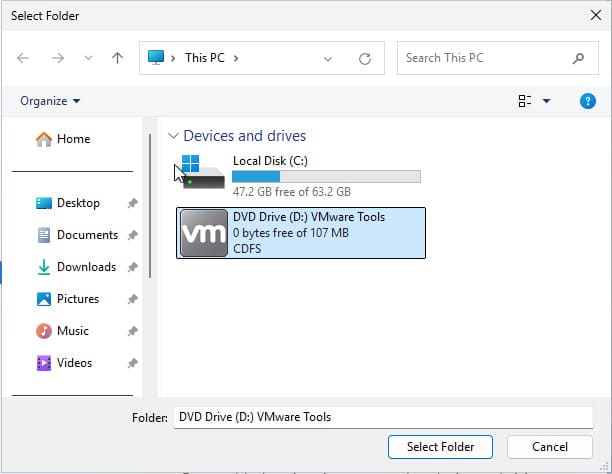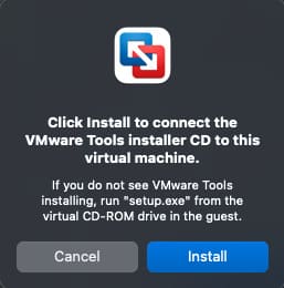 — Go to the Virtual Machine menu and click Install VMware Tools.