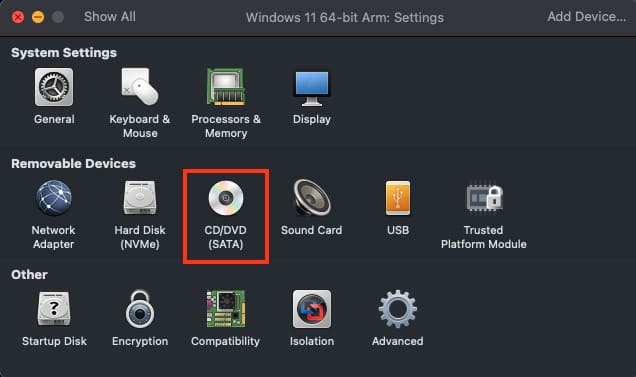 Then add the Windows 11 ARM image (ISO file) that you downloaded earlier.