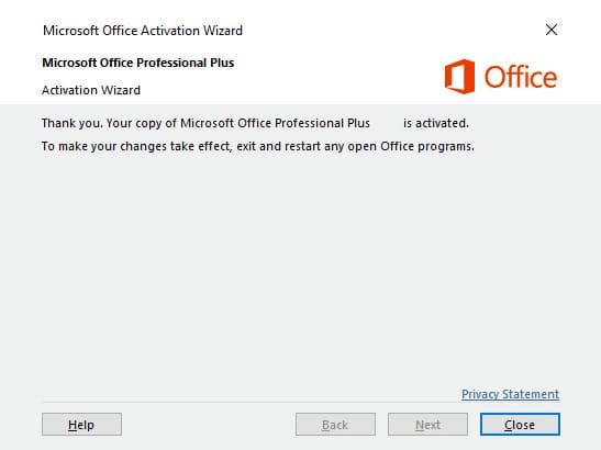 11) If everything went well, you will see a window indicating that the application is activated.
