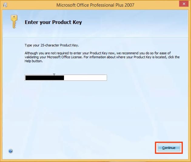 3) The first installation window will ask you to enter the product key. You can purchase a product key for Microsoft Office 2007 Pro Plus in our catalog on the next page for only 0 ₽. Instant delivery to your email automatically right after payment. Orders are processed 24/7.