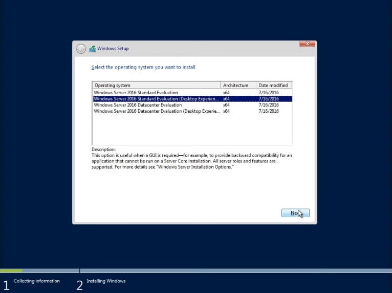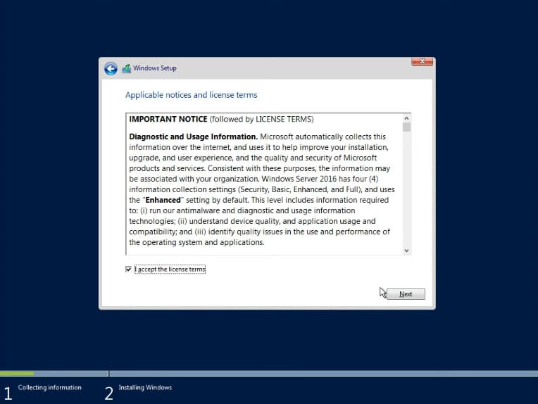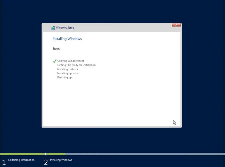 The installation of Windows Server 2016 will then begin.