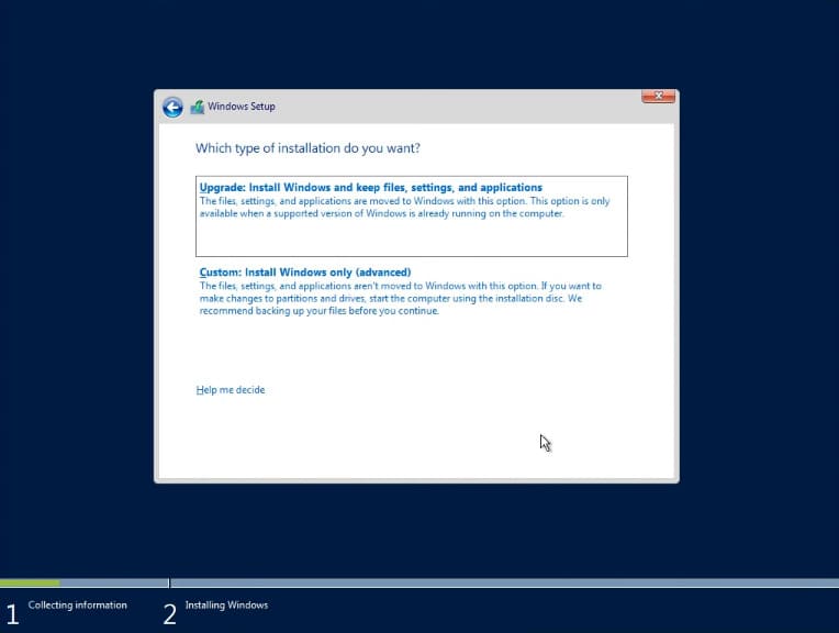 In the next step, select «Custom installation» as we are installing the system from scratch.
