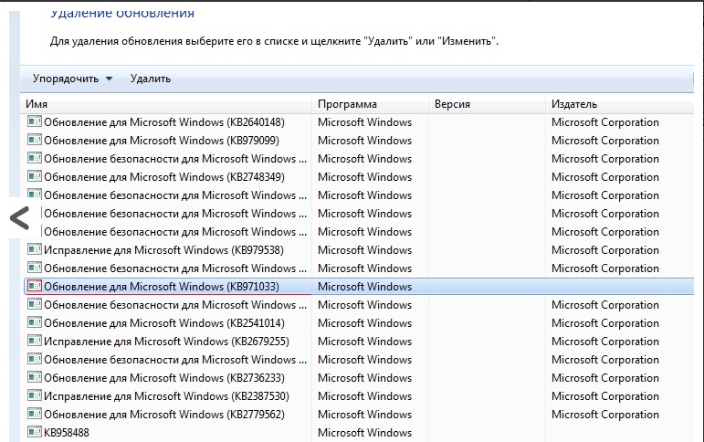 Такие ошибки могут возникать из-за одного обновления — KB971033. Поэтому его нужно найти и удалить.