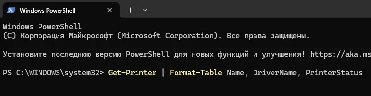 Get-Printer | Format-Table Name, DriverName, PrinterStatus