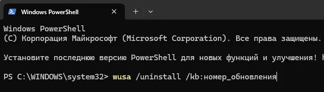 wusa /uninstall /kb:номер_обновления