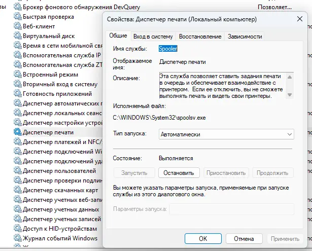 Проверяем и перезапускаем службу печати