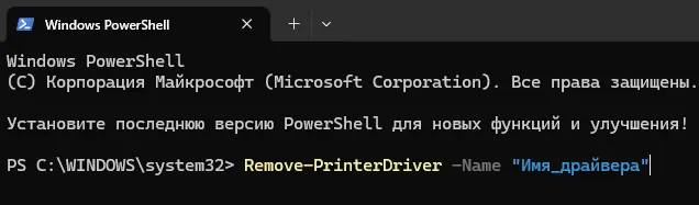 Remove-PrinterDriver -Name "Имя_драйвера"