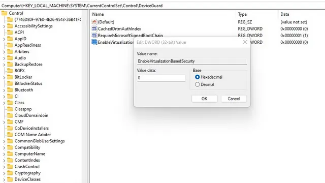 Отключение Целостности памяти может не полностью отключить VBS, если он был включен через другие настройки. Чтобы гарантированно отключить Безопасность на основе виртуализации, можно использовать реестр. Будьте осторожны при работе с реестром!