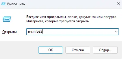 1. Нажмите клавиши Win + R, введите msinfo32 и нажмите Enter.