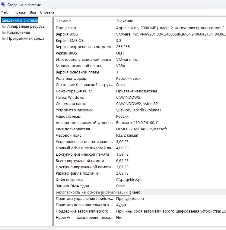 2. В окне «Сведения о системе» найдите строку «Безопасность на основе виртуализации» (Virtualization-Based Security).
