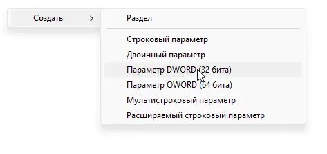 — Создайте или измените параметр DWORD (32-бит):